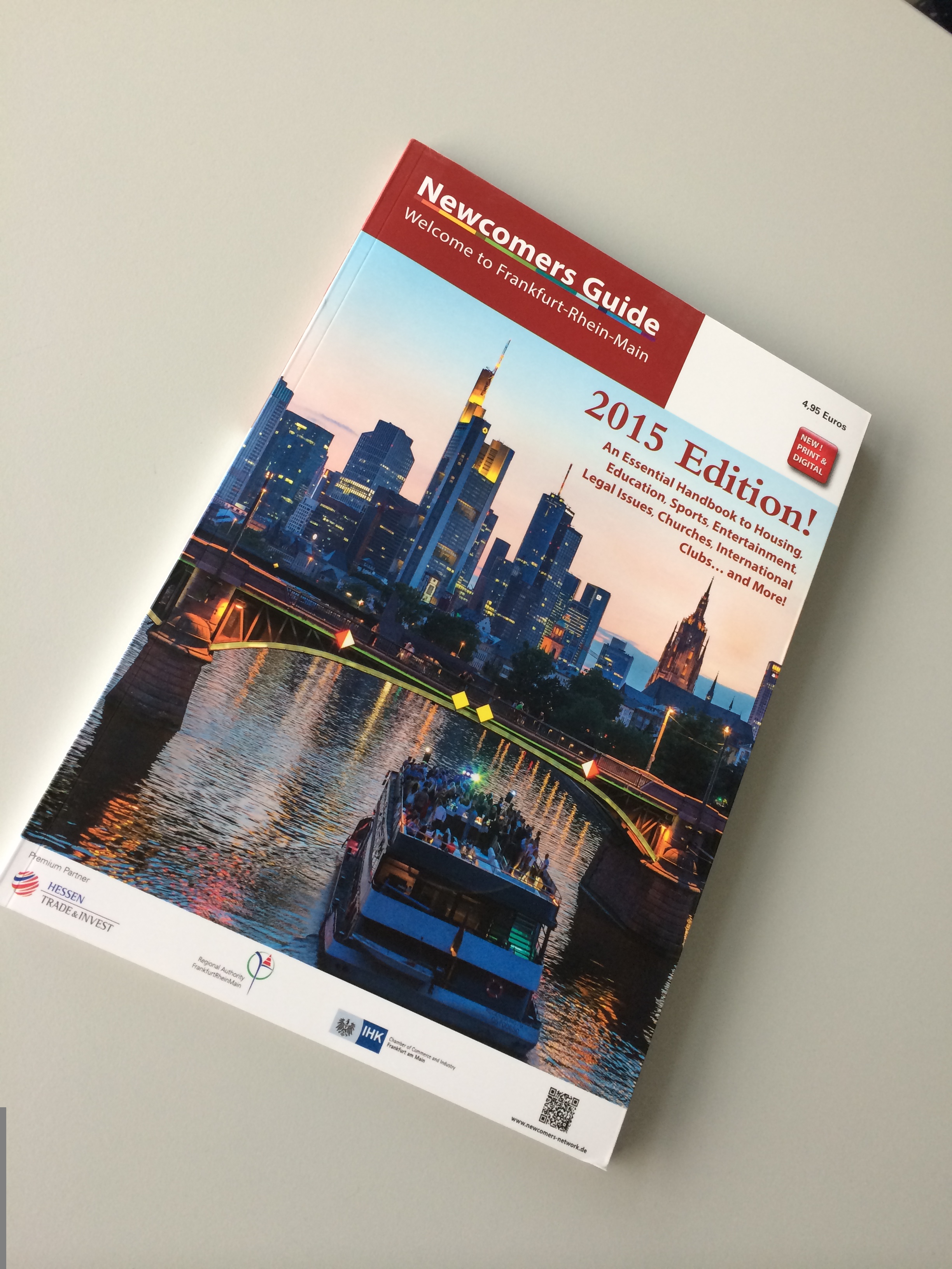 The 2015 Newcomer’s guide is here. If you are new in Frankfurt or thinking of moving here in the next few months, this is the one publication you should try to get your hands on. It costs nearly €5, but there are also lots of free copies around. In spite of all of the adverts, it is a really useful beginners guide to the city. Where to live, where to study, how to find a doctor, etc. The sections on entertainment, culture and leisure are probably not immediately relevant to most new arrivals but I’m sure you might be interested at some point!
