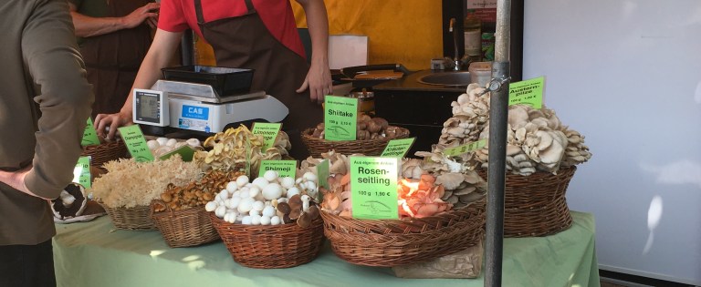Particularly good are the vegan mushroom stand, selling a few different types of mushroom risottos, mushroom pancakes, and vegan mushroom burgers. Also the fishmonger in the corner sell grilled fish dishes alongside the regular iced fish.