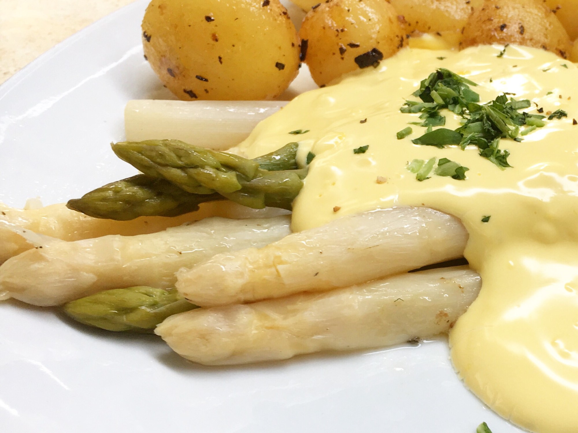 That’s right, to produce white asparagus, the plant is essentially buried for three years, then harvested by hand, peeled by specialist (German-made of course) machinery, before being served in a sea of Hollandaise sauce. The last bit seems odd as well. Apparently, according to Spargel aficionados, white asparagus has a gentler, sweeter and more subtle flavour that the regular green version. So why on earth do they need to cover it in so much Hollandaise sauce?