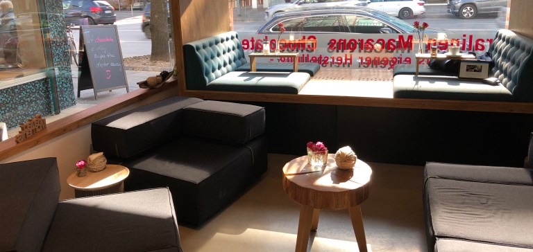 To be honest the pictures speak for themselves: this is a small Chocolaterie that serves their own handmade Pralines, Macarons and ice creams. Although ice cream isn’t available until next week :). Too cold outside it seems.