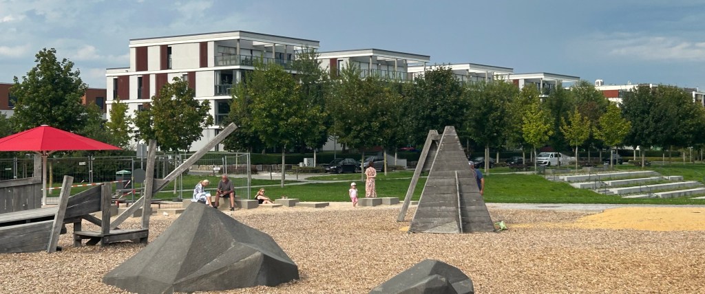 Riedberg was a greenfield construction project by the city designated as zone for young families. Was a direct response to the lack of affordable housing, schooling and family-friendly green spaces in the city. To be fair, they nailed it with the green spaces. I am here on a warm summer day, school is out and the playgrounds are full of kids and families having picnics.
