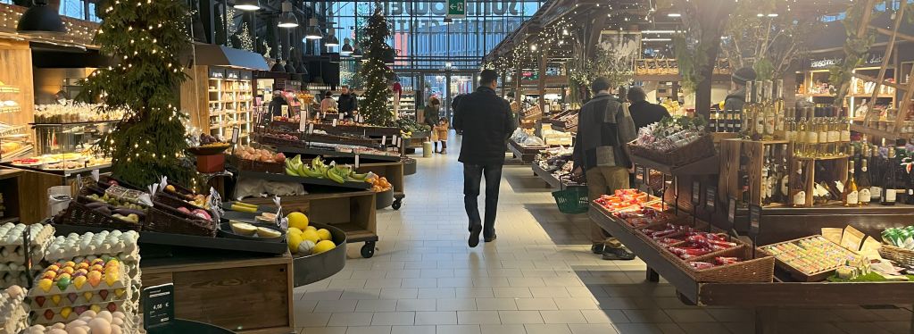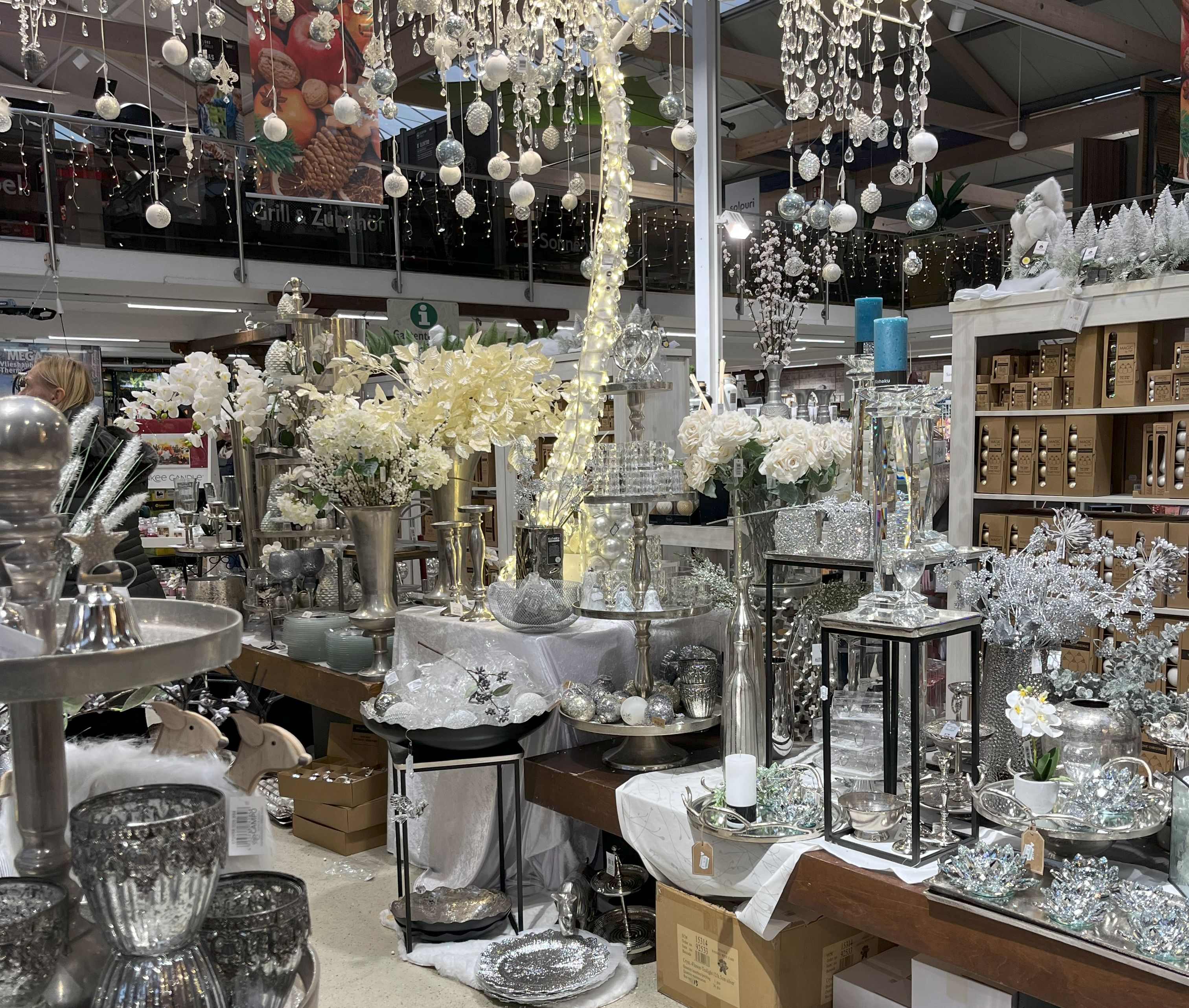 The centre has a large fresh food market with local farm produce and imported, mainly Italian, feinkost foods. After the food market, there is a regular garden centre, incidently with a really big collection of grills and barbecues, a very nice wine shop, and then for two months every year, a Christmas market. The selection of decorations is really impressive. Both unique, good quality and really wide selection of nice ideas. It is a little on the expensive side but will last for years.