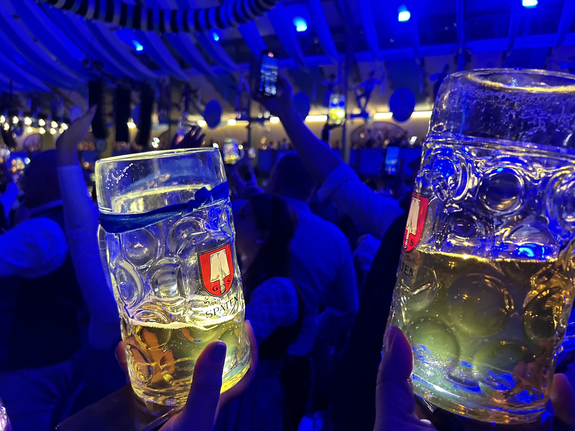 Which brings me on to the baggage issue. There is a strict bags policy to the Wiesn/fairground: handbags and mini-rucksacks only. And inside the tents, any personal belongings need to be left on a table/bench or wedged under the table legs.